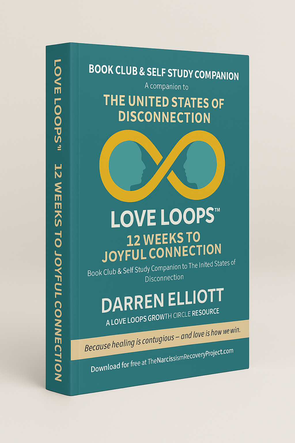The United States of Disconnection is the first release under The Narcissism Recovery Project™. Written by Registered Psychotherapist Darren Elliott, it offers a culturally urgent lens on how narcissistic abuse is playing out across politics, religion, social media, and family life — and what it will take to heal.